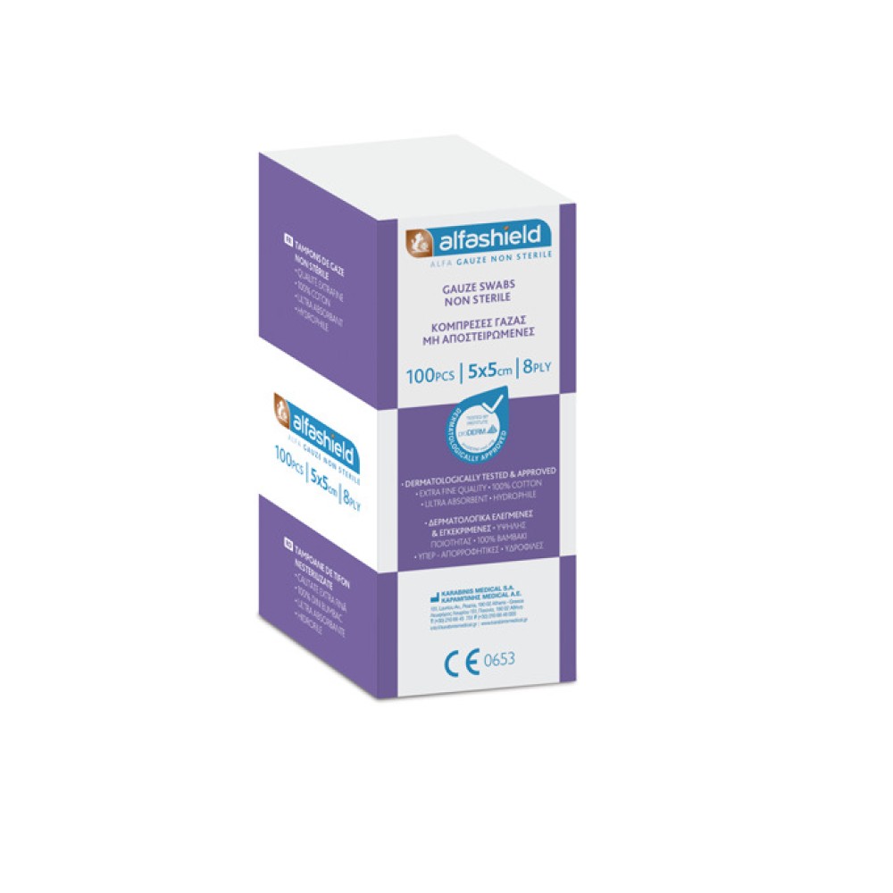 Alfashield Μη Αποστειρωμένη Γάζα 8ply 5x5cm 100 τεμάχια