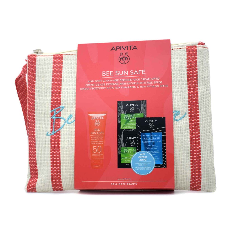 Oλοκληρωμένο σετ φροντίδας για υψηλή αντηλιακή προστασία και ενυδάτωση. Με την αγορά της Kρέμας Προσώπου κατά των Πανάδων & των Ρυτίδων SPF50, δώρο η Express Μάσκα Προσώπου Αλόη 2x8ml & Express Μάσκα Μαλλιών για Ενυδάτωση 20ml σε συλλεκτικό καλοκαιρινό, eco-friendly τσαντάκι.