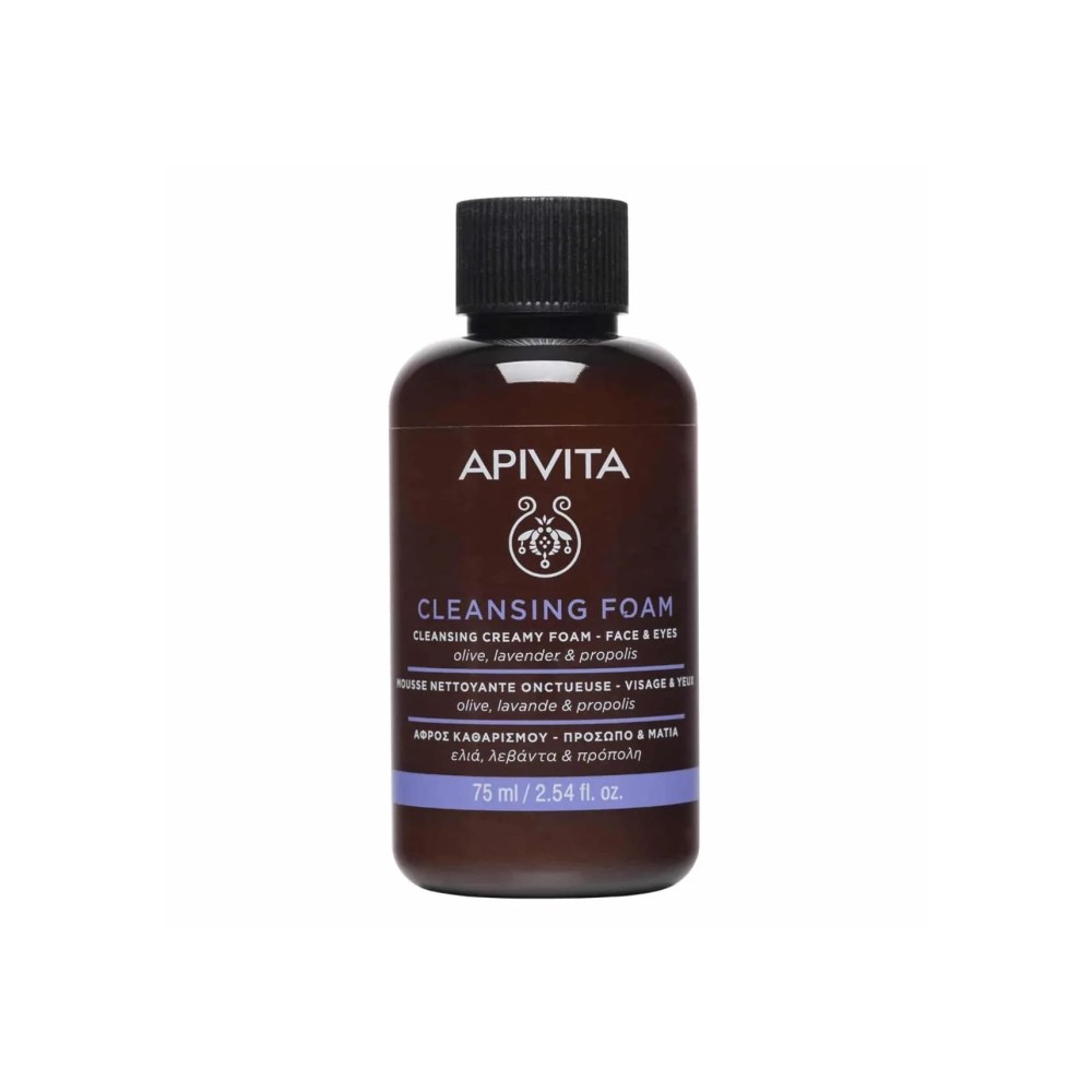 Apivita Mini Cleansing κρεμώδης αφρός καθαρισμού προσώπου & μάτια με ελιά και λεβάντα 75ml