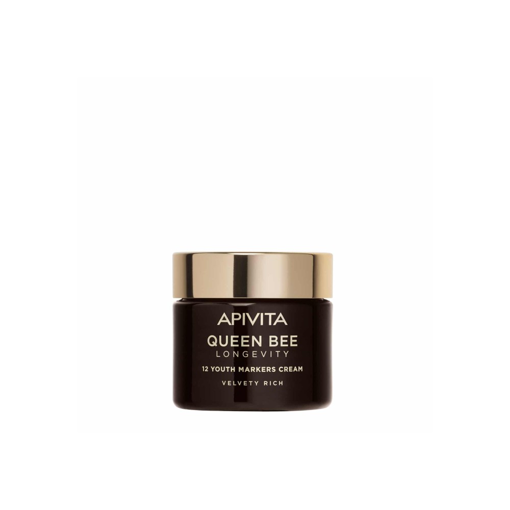 Η QUEEN BEE LONGEVITY ΠΛΟΥΣΙΑ ΒΕΛΟΥΔΙΝΗ ΚΡΕΜΑ ΓΙΑ ΔΡΑΣΗ ΣΕ 12 ΔΕΙΚΤΕΣ ΝΕΟΤΗΤΑΣ αξιοποιεί την εξαιρετική δύναμη μακροζωίας των πατεντών Royal Jelly-IR & CR σε συνδυασμό με τα Φυτικά Εξωσωμικά Πεπτίδια για τη βελτίωση των 12 δεικτών νεότητας της επιδερμίδας.