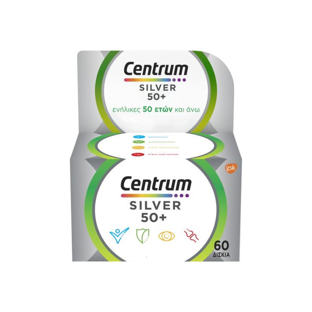 Το Centrum Silver 50+ είναι ένα συμπλήρωμα διατροφής με προσαρμοσμένα επίπεδα βιταμινών, μετάλλων και ιχνοστοιχείων, ώστε να ανταποκρίνεται στις διατροφικές ανάγκες των ενηλίκων 50 ετών και άνω. Εύκολο στη λήψη, όπου και όποτε το χρειαστείτε. Κατάλληλο για ενήλικες, άνδρες και γυναίκες.