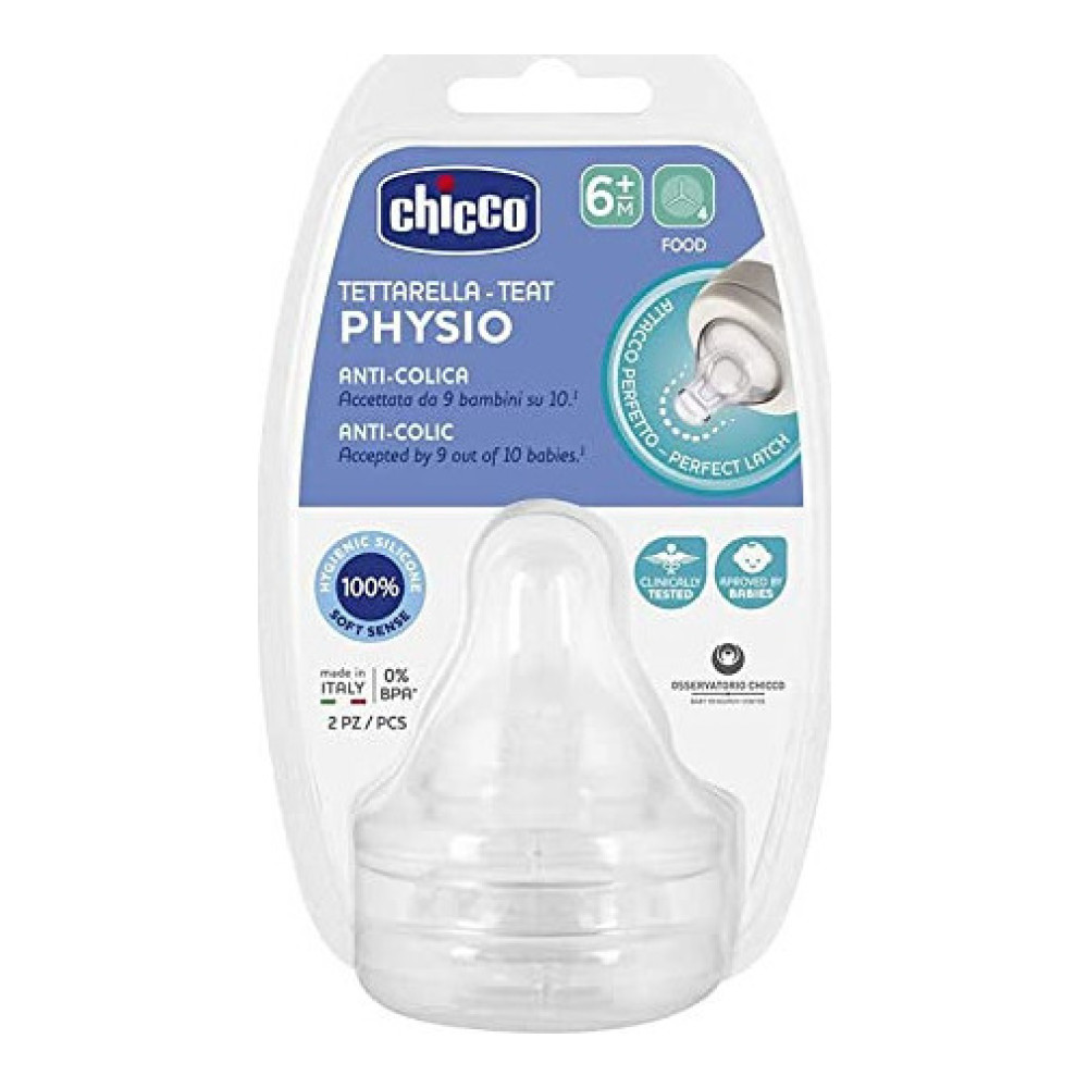 Η θηλή σιλικόνης Physio Chicco προσαρμόζεται τέλεια στο στόμα του μωρού και σέβεται τη φυσική κίνηση θηλασμού. Κατασκευασμένο από εξαιρετικά μαλακή σιλικόνη, η θηλή Chicco Physio προσομοιώνει τέλεια το στήθος της μητέρας, προσφέροντας στο μωρό μια άνετη αίσθηση που διευκολύνει την αποδοχή. Χάρη στο εργονομικό της σχήμα, η θηλή Physio Silicone της Chicco ευνοεί την ρυθμική κίνηση της γλώσσας κατά τη διάρκεια του πιπιλίσματος. Διαθέσιμο σε 4 διαφορετικές παραλλαγές ροής, η θηλή Physio προσαρμόζεται τέλεια σε όλα τα μπουκάλια των σειρών PERFECT 5, Well-Being και Original Touch.