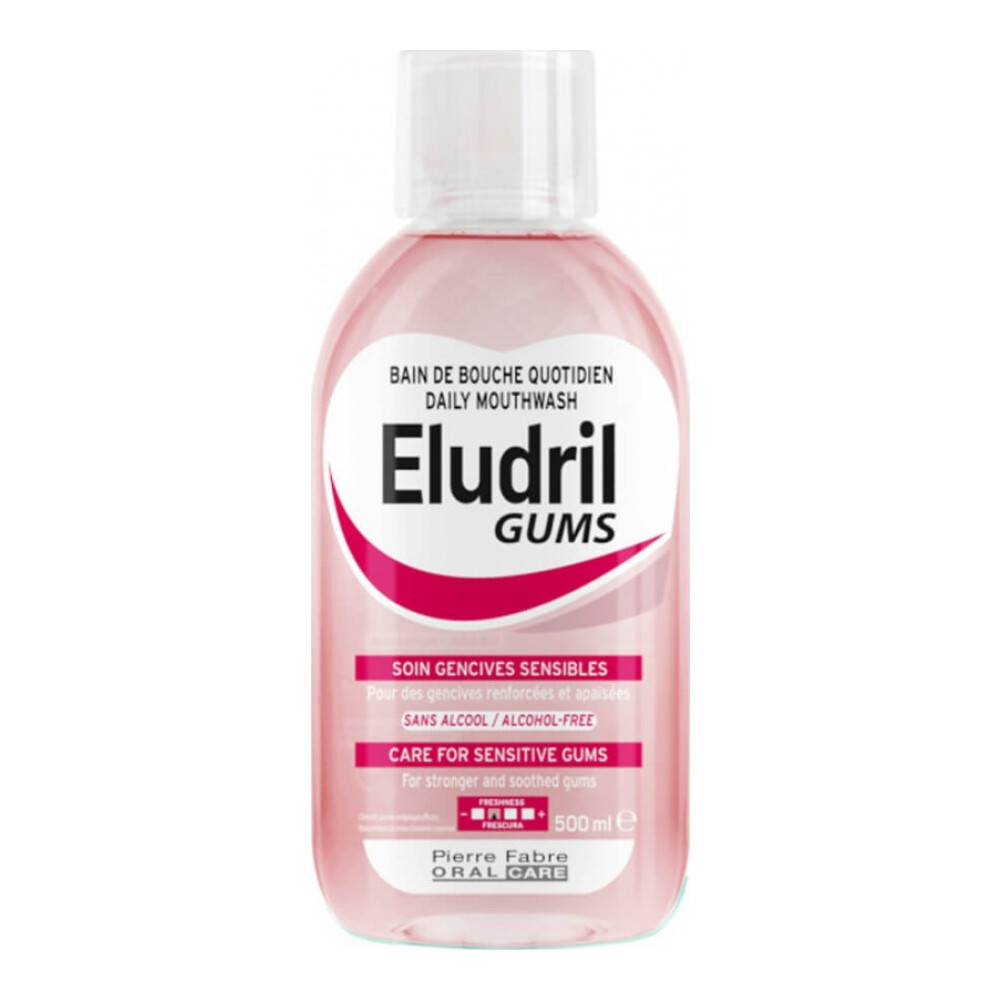 Το ELUDRIL GUMS είναι προσαρμοσμένο για όσους υποφέρουν από ευαίσθητα ούλα, ειδικά κατά το βούρτσισμα, και για όσους επιθυμούν να συμπληρώσουν την αποτελεσματικότητα του βουρτσίσματος, για την καλύτερη καταπολέμηση της πλάκας, την κύρια αιτία προβλημάτων των ούλων (ευαισθησία, ερεθισμός κ.λπ.). Δεν περιέχει αλκοόλ, είναι έτοιμο προς χρήση και καταπολεμά αποτελεσματικά τον πολλαπλασιασμό των βακτηρίων για 12 ώρες για τη διατήρηση υγιών ούλων και περιορίζει τη δυσφορία των ούλων (τσούξιμο, ερυθρότητα και αίσθημα τραβήγματος) για αποκατάσταση της άνεσης των ούλων.