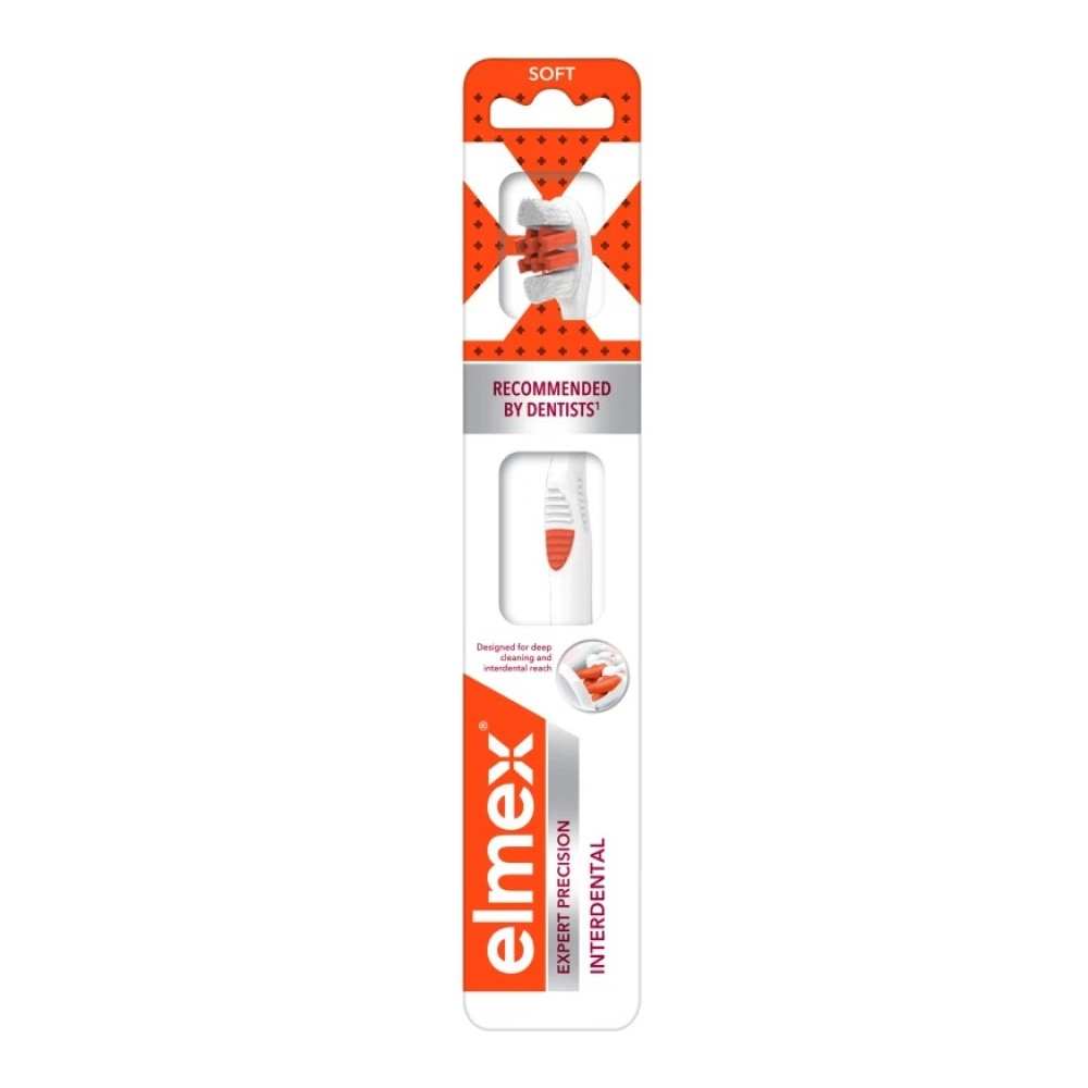 Η Expert Precision Interdental Soft Toothbrush έχει αναπτυχθεί ειδικά για τον σχολαστικό καθαρισμό των μεσοδόντιων διαστημάτων και των επιφανειών των δοντιών. Με πάνω από 4.500 ίνες υψηλής πυκνότητας σε διαφορετικά ύψη και γωνίες, αφαιρεί αποτελεσματικά τη βακτηριακή πλάκα ακόμη και από δύσκολα σημεία. Οι κωνικές ίνες σε σχήμα Χ εξασφαλίζουν βαθύ καθαρισμό των μεσοδοντίων, ενώ η εργονομική λαβή προσφέρει άνετο και ελεγχόμενο κράτημα. Μια μαλακή οδοντόβουρτσα σχεδιασμένη για ακριβή, αποτελεσματική και ταυτόχρονα απαλή φροντίδα της στοματικής υγείας.