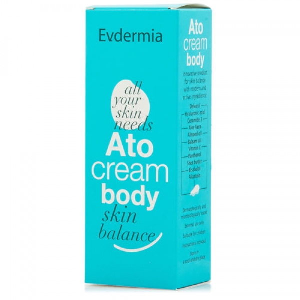 Η κρέμα Evdermia Ato Cream Body ενδείκνυται για το ξηρό, ερεθισμένο και ατοπικό δέρμα.Χαρακτηριστικά