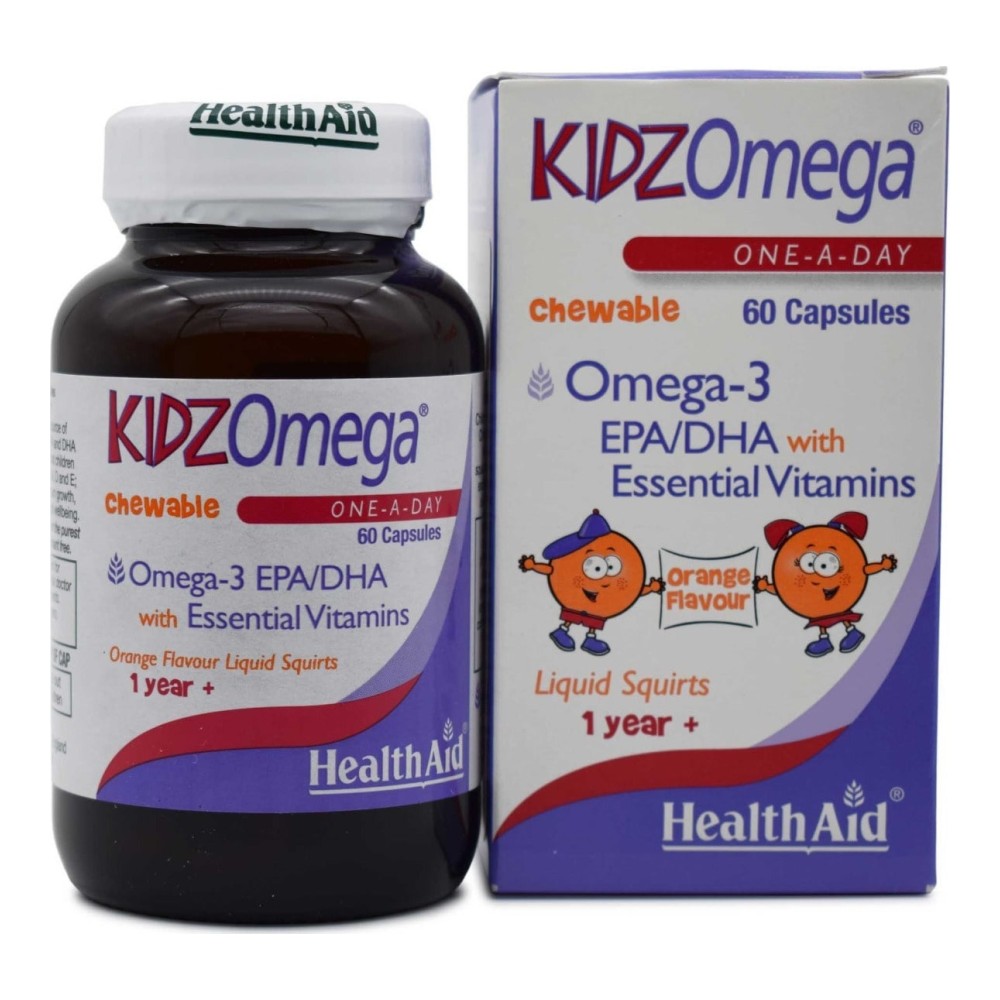 Μασώμενες κόκκινες παστίλιες με υπέροχη γεύση πορτοκάλιΕιδικές αγνές συνθέσεις της Health Aid για παιδιά από υψηλής ποιότητας & καθαρότητας Omega 3 (epA /DHA) με τις απαραίτητες Bιταμίνες Α, D, c, e &Folic Acid. Στηρίζουν την σωστή ανάπτυξη του οργανισμού, ενισχύουν την μνήμη, βοηθούν στην αυτοσυγκέντρωση και έχουν υπέροχη γεύση με φυσικά γλυκαντικά (xylitol για να μην βλάπτουν τα δόντια). Το liquid περιέχει και άγρια μούρα που το ενισχύουν με τις αντιοξειδωτικές του ιδιότητες & βελτιώνουν την γεύση.