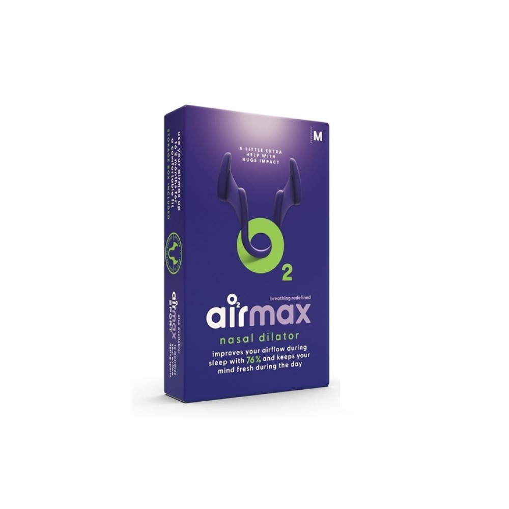 To Airmax είναι ένας ρινικός διαστολέας, κατασκευασμένος από ένα μαλακό, άοσμο και ιατρικά πιστοποιημένο πλαστικό (S.E.B.S), που διαστέλλει τον στενότερο χώρο στη μύτη, επιτρέποντας να απορροφηθεί περισσότερο οξυγόνο. Στην ουσία αυξάνει την πρόσληψη οξυγόνου, διευρύνοντας τις ρινικές διόδους.