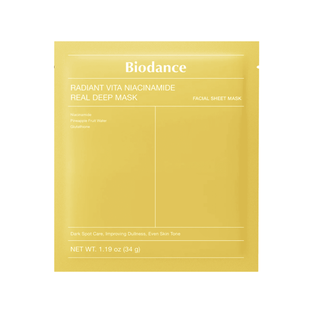Η BIODANCE Radiant Vita Niacinamide Real Deep Mask είναι μια μάσκα υδρογέλης προσώπου σχεδιασμένη για εντατική ενυδάτωση και βελτίωση της φωτεινότητας της επιδερμίδας. Η εύκαμπτη υφή της εφαρμόζει άψογα στο πρόσωπο, επιτρέποντας στα δραστικά συστατικά να απορροφηθούν σταδιακά και αποτελεσματικά.