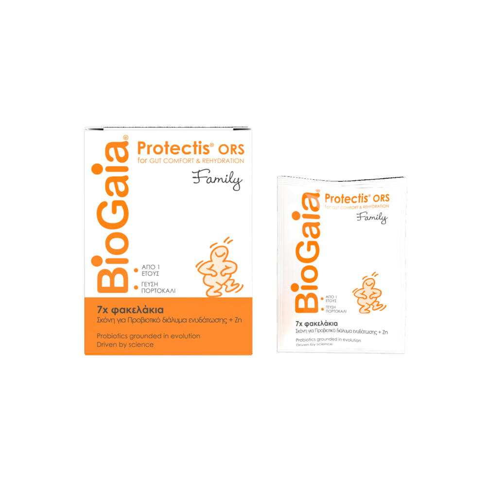 BioGaia® ProTectis ORS Family Διάλυμα Ενυδάτωσης με Προβιτικό & Ψευδάργυρο με ευχάριστη γεύση Πορτοκάλι 5.5 gr x 7 φακελίσκοι
