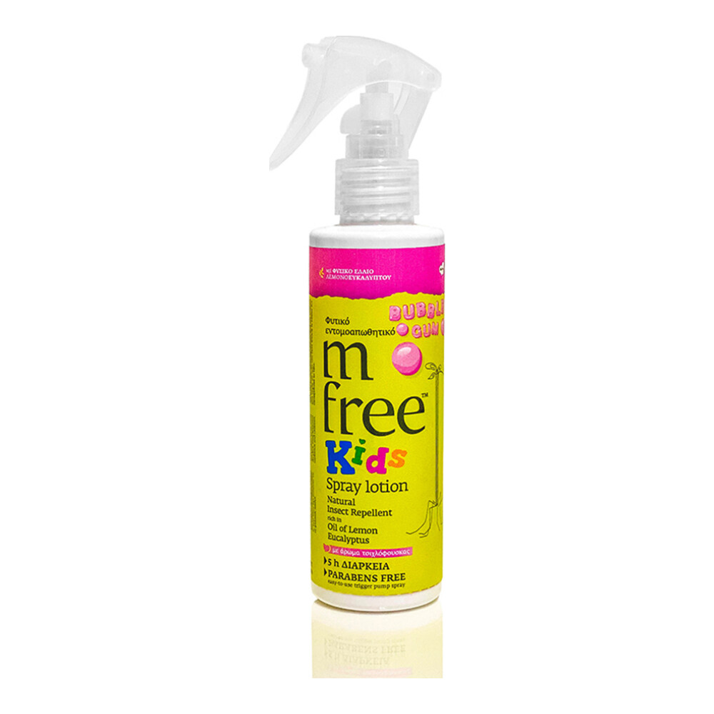 Το M Free Kids Natural Insect Repellent Spray Lotion Bubble Gum είναι μία φυτική παιδική εντομοαπωθητική λοσιόν με άρωμα τσιχλόφουσκας για αποτελεσματική προστασία από τα κουνούπια και άλλα έντομα.