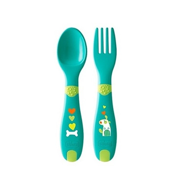 Το σετ πηρούνι και κουτάλι βοηθά το μωρό να αρχίσει να τρώει μόνο του. Έχουν εργονομική λαβή και ασφαλή άκρα. Πλένονται στο πλυντήριο πιάτων.