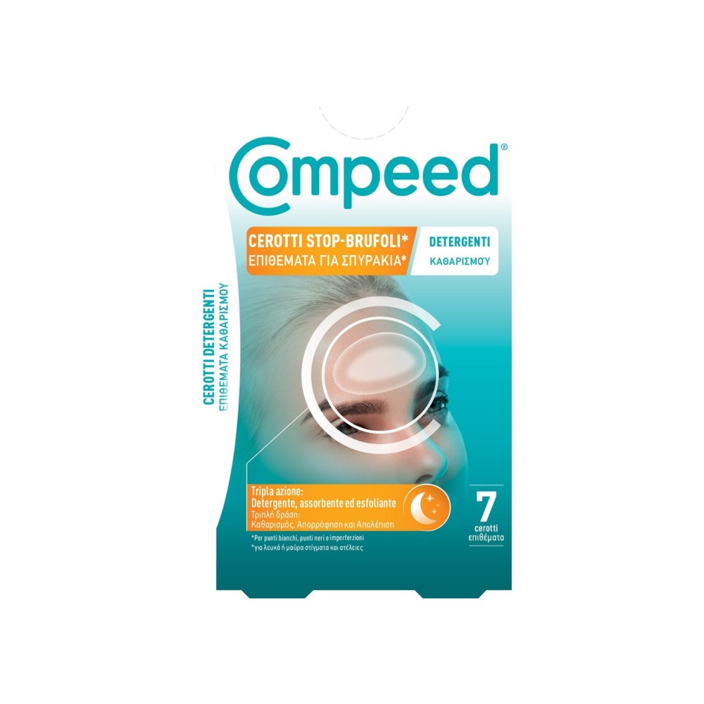 Μάσκα προσώπου σε αυτοκόλλητα επιθέματα νυκτός της Compeed, τα οποία αφαιρούνται εύκολα και είναι ειδικά σχεδιασμένα ώστε να εφαρμόζονται με ακρίβεια σε μικρές περιοχές στο πρόσωπο. Χάρη στη σύνθεσή της με αυξημένη περιεκτικότητα σε συστατικά, εισχωρεί στις ανώτερες στοιβάδες του δέρματος καταπολεμώντας την ακμή και αφαιρώντας τα μαύρα στίγματα.