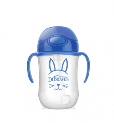 Dr. Brown's Baby's First Straw Cup 91012 Κύπελλο με καλαμάκι & λαβές 6m+, μπλε χρώμα, 270ml