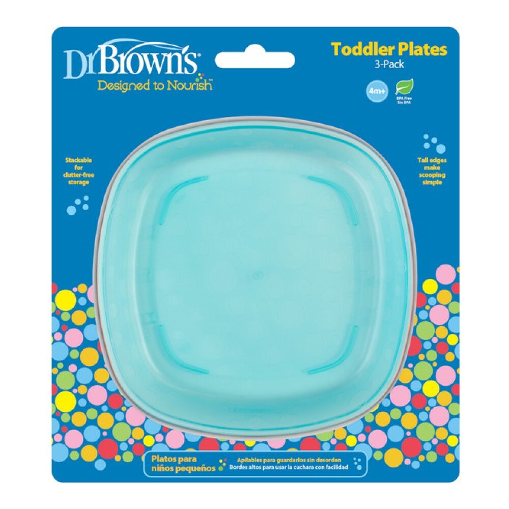 Οι μεταβάσεις στα πρώτα φαγητά είναι ευκολότερες και πιο διασκεδαστικές με το φωτεινό, πολύχρωμο σετ τριών πιάτων Toddler Plates.