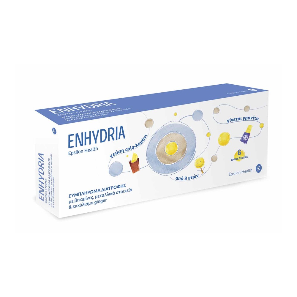 Το συμπλήρωμα διατροφής Enhydria της Espilon Health περιέχει βιταμίνες, μεταλλικά στοιχεία και εκχύλισμα ginger και βοηθάει στην αναπλήρωση των ηλεκτρολυτών.