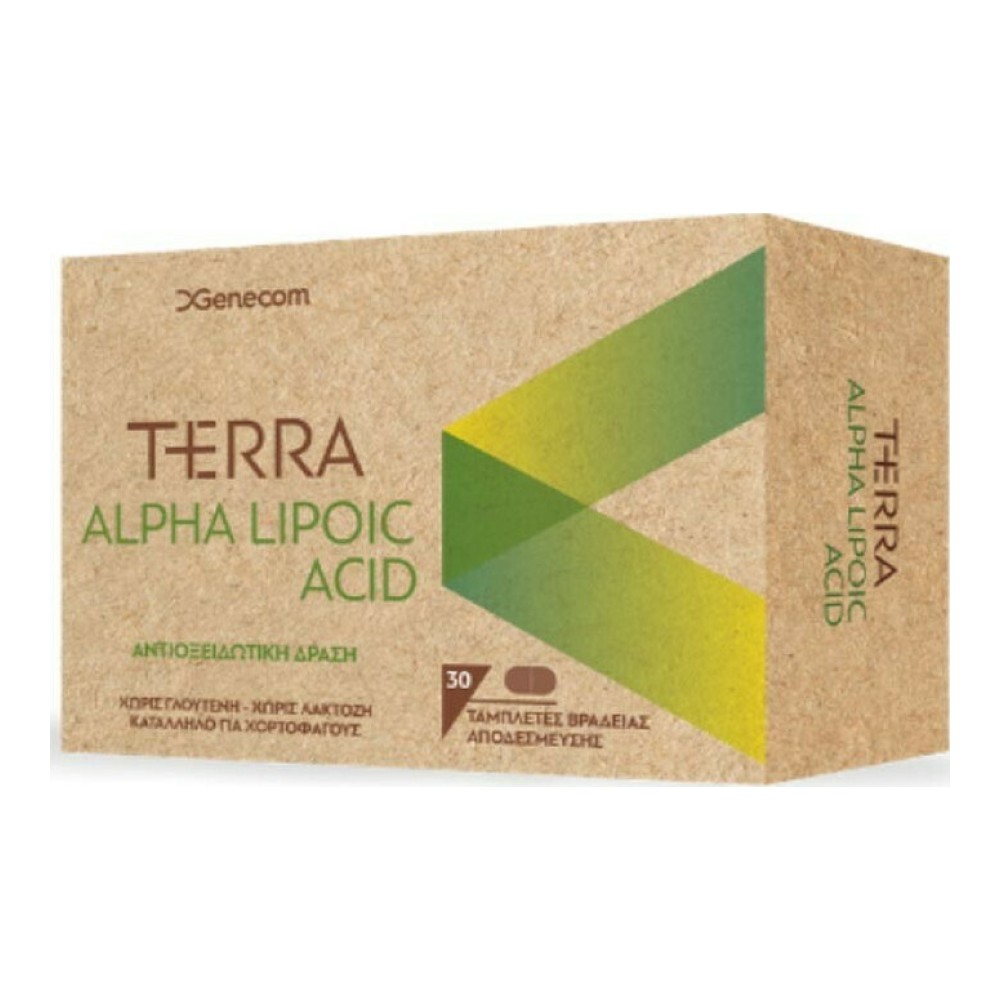 Genecom Terra Alpha Lipoic Acid Συμπλήρωμα Διατροφής Με Άλφα Λιποϊκό Οξύ Για Αντιοξειδωτική δράση 30 ταμπλέτες