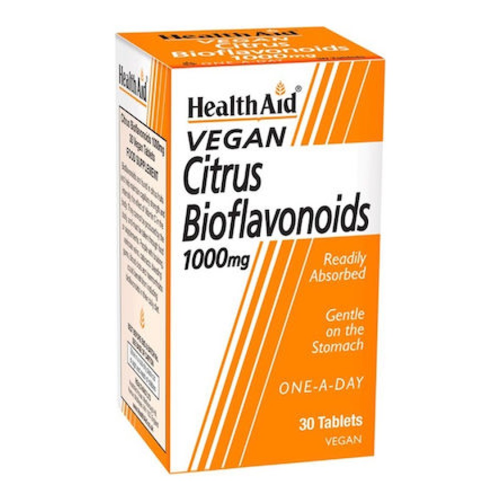 Το Citrus Bioflavonoids της HealthAid περιέχει 1000mg βιοφλαβονοειδή εσπεριδοειδών, υψηλής ποιότητας, χωρίς να ερεθίζουν το στομάχι, κατάλληλα και για αυστηρά χορτοφάγους (VEGAN).