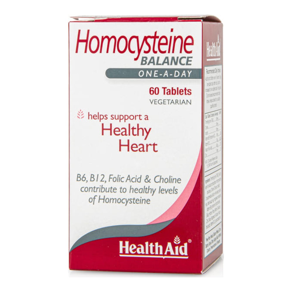 Το Homocysteine BALANCE της HealthAid είναι μία ειδικά παρασκευασμένη φόρμουλα με φολικό οξύ, βιταμίνες Β6 & Β12 καθώς και Τριμέθυλγλυκίνη (TMG), τα οποία συμβάλλουν στη διατήρηση υγιών επιπέδων ομοκυστείνης στο αίμα, σε υγιείς και σε όσους εμφανίζουν υψηλά επίπεδα. Επιπλέον περιέχει ινοσιτόλη και χολίνη για τη διατήρηση της υγιούς ηπατικής λειτουργίας.