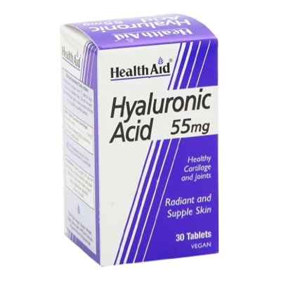 Το Υαλουρονικό Οξύ είναι ένα φυσικό συστατικό που απαντάται στους χόνδρους των αρθρώσεων καθώς και σε πολλούς ιστούς στον οργανισμό.Το Hyaluronic Acid της HealthAid βοηθά στην ομαλή λειτουργία των αρθρώσεων και εμποδίζει την εμφάνιση εκφυλιστικών καταστάσεων, όπως ρευματοπάθειες, πόνοι αρθρώσεων, οστεοαρθρίτιδα κ.α. Βασικό δομικό συστατικό του οργανισμού, βοηθά στη διατήρηση της υγείας των συνδετικών ιστών του δέρματος, διορθώνει την λεπτή ρυτίδωση & αναζωογονεί το δέρμα, ενυδατώνοντάς το.Αλλάζει την συνολική υφή του δέρματος δίνοντάς του λάμψη & φρεσκάδα .Συστατικά :