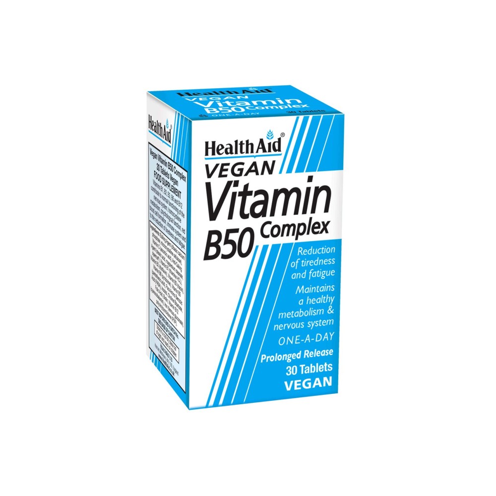Health Aid Vitamin B50 Complex Ενισχυμένος Συνδυασμός Βιταμινών του Συμπλέγματος Β, 30 VegTabs