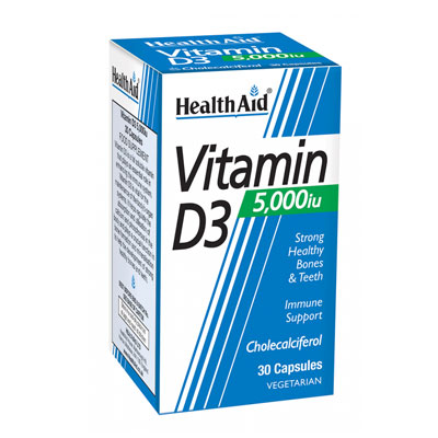 Η Vitamin D3 της HealthAid είναι χοληκαλσιφερόλη, η πιο βιοδιαθέσιμη μορφή Βιταμίνης D από τον οργανισμό, απαραίτητη σε πολλές βιολογικές λειτουργίες όπως είναι η απορρόφηση και αξιοποίηση του ασβεστίου και του φωσφόρου που συντελούν στην πρόληψη της οστεοπόρωσης. Σημαντική επίσης για υγιή ανάπτυξη, για συντήρηση δυνατών οστών και δοντιών και για τον πολλαπλασιασμό των κυττάρων. Παρέχει μεγάλη προστασία στο ανοσοποιητικό μας σύστημα & προστατεύει από λοιμώξεις & φλεγμονές (κρυολόγημα, ιώσεις, άσθμα, καρδιά) κυρίως το χειμώνα (λιγότερη ηλιοφάνεια). Απαραίτητη στα άτομα της τρίτης ηλικίας, που είναι ιδιαίτερα επιρρεπή σε κατάγματα των οστών λόγω της οστεοπόρωσης, αλλά και ιδανικό για όσους δεν εκτίθενται αρκετά για διάφορους λόγους στον ήλιο (sunshine vitamin).