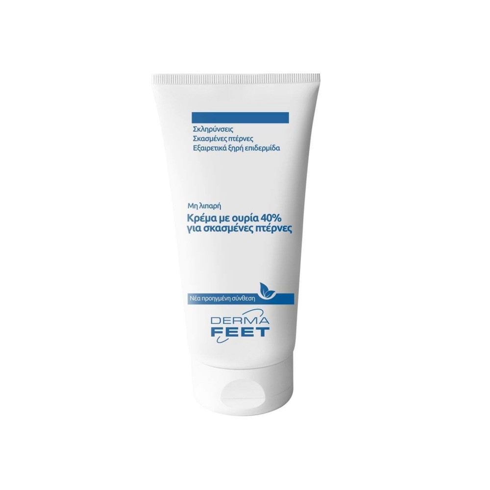 Κρέμα ποδιών Derma Feet, ιδανική για ανάπλαση και προστασία με περιεκτικότητα Emulgel Urea 40%. Εξαιρετικά ξηρή, τραχιά και αφυδατωμένη επιδερμίδα, ειδικά στην περιοχή της πτέρνας. Η κρέμα με ουρία 40% για σκασμένες πτέρνες, ενυδατώνει, μαλακώνει και μειώνει το πάχος της επιδερμίδας χάρη στη δράση των συστατικών της. Η υψηλή περιεκτικότητα σε ουρία προσφέρει έντονη κερατολυτική, ενυδατική και απολεπιστική δράση.