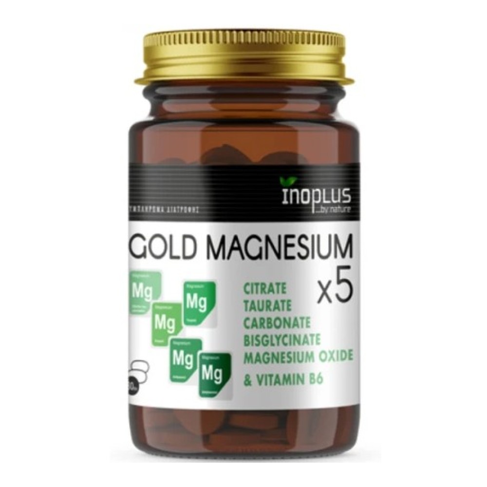 Inoplus Gold Magnesium x5 για την Καλή Λειτουργία των Μυών & του Νευρικού Συστήματος, 30 Δισκία