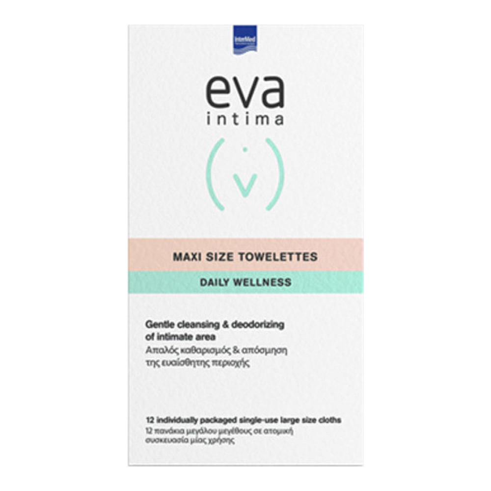 Τα Eva Intima Maxi Size Towelettes Individually Packed είναι μαλακά πανάκια, μεγάλου μεγέθους εμποτισμένα με έναν ειδικό συνδυασμό βοτάνων και βιταμινών που προσφέρει καθαριστική, αντικνησμική και αποσμητική δράση για άμεση καθαριότητα και φυσική αντιμικροβιακή προστασία, έτσι ώστε κάθε γυναίκα τη δυνατότητα να αισθάνεται καθαρή, δροσερή και προστατευμένη όπου και αν βρίσκεται.