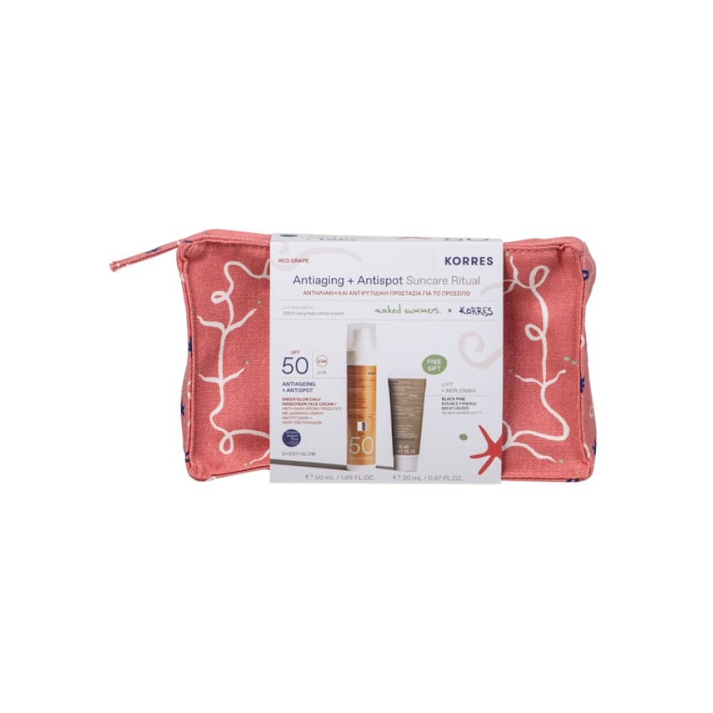 Korres Promo Red Grape Sheer Glow Sunscreen Face Cream SPF50 50ml & Black Pine Firming Moisturizer 20ml & Δώρο Νεσεσέρ