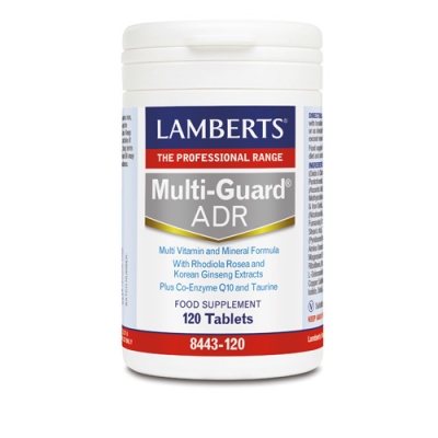 Διατροφική Αξία & ΣυστατικάΠεριεκτικότητα ανά 2 ταμπλέτες:Βιταμίνη D: 10µgΒιταμίνη K: 20µgΘειαμίνη: 25mgΝιασίνη: 50mgΦολικό Οξύ: 400µgΒιοτίνη: 150µgΑσβέστιο: 400mgΣίδηρο: 14mgΧαλκός: 0,5mgΣελήνιο: 200µgΙώδιο: 150µgΙνοσιτόλη: 24mgΤαυρίνη: 50mgΣυνένζυμο Q10: 30mgRhodiola Rosea (ως 125mg τιτλοδοτημένου εκχυλίσματος): 500mgKorean Ginseng (ως 40mg τιτλοδοτημένου εκχυλίσματος): 400mgΠαρέχοντας Ginsenosides: 8mgΒιταμίνη E: 12mgΒιταμίνη C: 100mgΡιβοφλαβίνη: 12mgΒιταμίνη B6: 10mgΒιταμίνη B12: 50µgΠαντοθενικό Οξύ: 150mgΜαγνήσιο: 250mgΨευδάργυρος: 15mgΜαγγάνιο: 0.5mgΧρώμιο: 200µgΔιτρυγική Χολίνη: 24mgPABA: 24mg