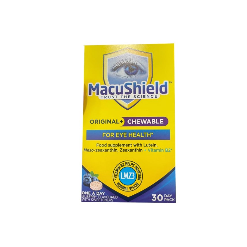 Το Macushield Original chewable είναι συμπλήρωμα διατροφής που περιέχει και τα τρία καροτενοειδή της ωχράς, συμπεριλαμβανομένης και της Μεσο-Ζεαξανθίνης.