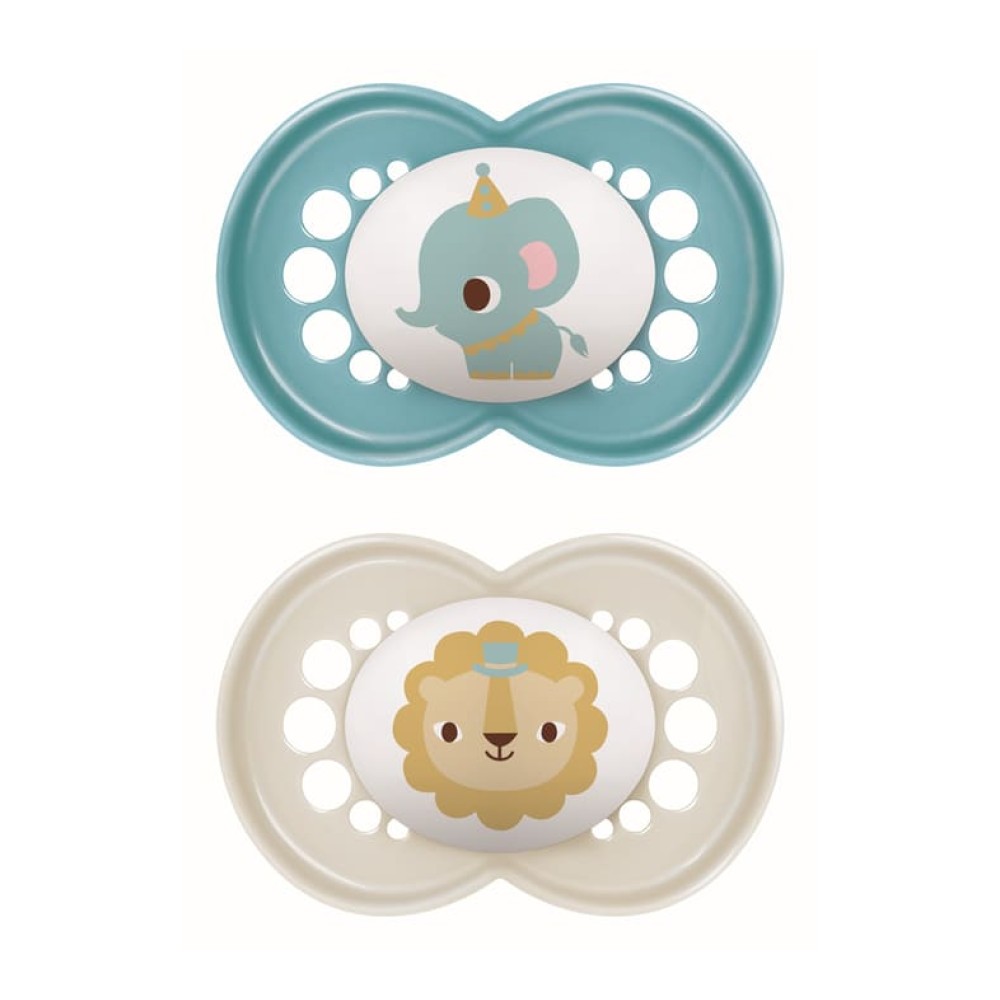 Ορθοδοντικές πιπίλες της εταιρείας Mam με θηλή από σιλικόνη, υλικό εύκαμπτο και ανθεκτικό στον χρόνο που αντέχει στις ακραίες θερμοκρασίες.