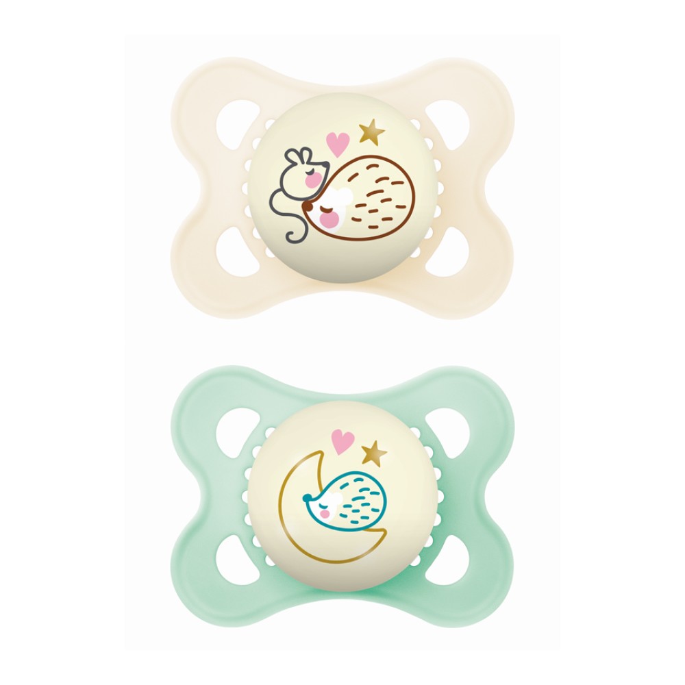 Αυτές οι πιπίλες είναι ιδανικές για βρέφη ηλικίας 2 έως 6 μηνών και έχουν κατασκευαστεί από απαλό και ασφαλή σιλικόνη, εξασφαλίζοντας άνεση και ασφάλεια κατά τη χρήση. Το σχέδιο τους σε κρεμ πράσινο χρώμα προσφέρει μια ευχάριστη και χαλαρή εμφάνιση.