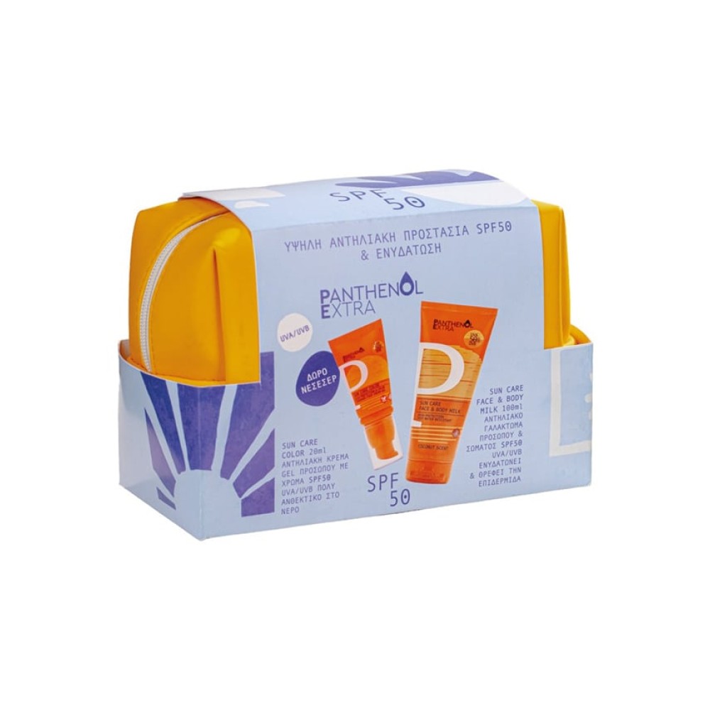 Medisei Promo Panthenol Extra Sun Care Color Αντηλιακή Κρέμα-Τζελ Με Χρώμα Προσώπου SPF50 20ml & Αντηλιακό Γαλάκτωμα Προσώπου & Σώματος SPF50 100ml & Δώρο Νεσεσέρ