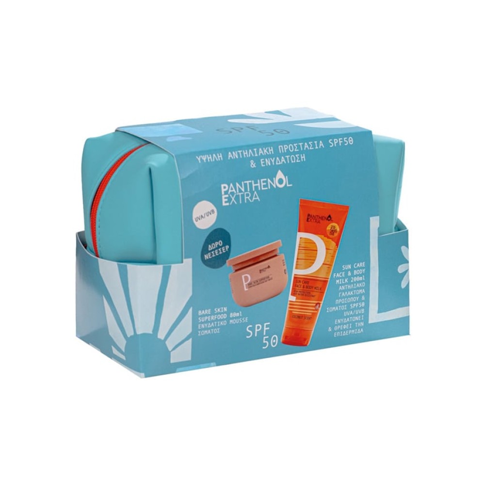 Medisei Promo Panthenol Extra Sun Care Face & Body Milk SPF50 200ml & Panthenol Extra Bare Skin Superfood Body Mousse 80ml & Δώρο Νεσεσέρ