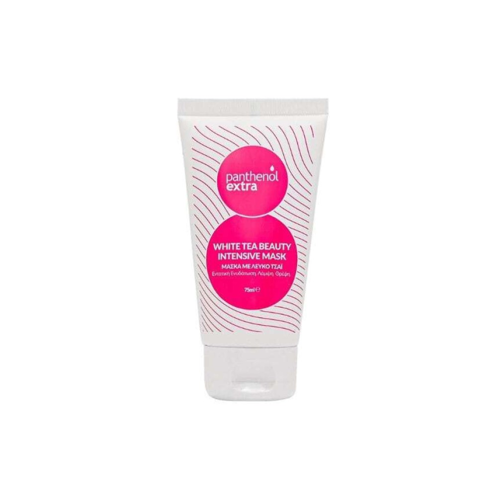 Η Panthenol Extra White Tea Beauty Intensive Mask είναι μια μάσκα προσώπου που περιέχει λευκό τσάι, υαλουρονικό οξύ, πανθενόλη, ενυδατικά σάκχαρα, αλόη, μέταλλα & ιχνοστοιχεία.