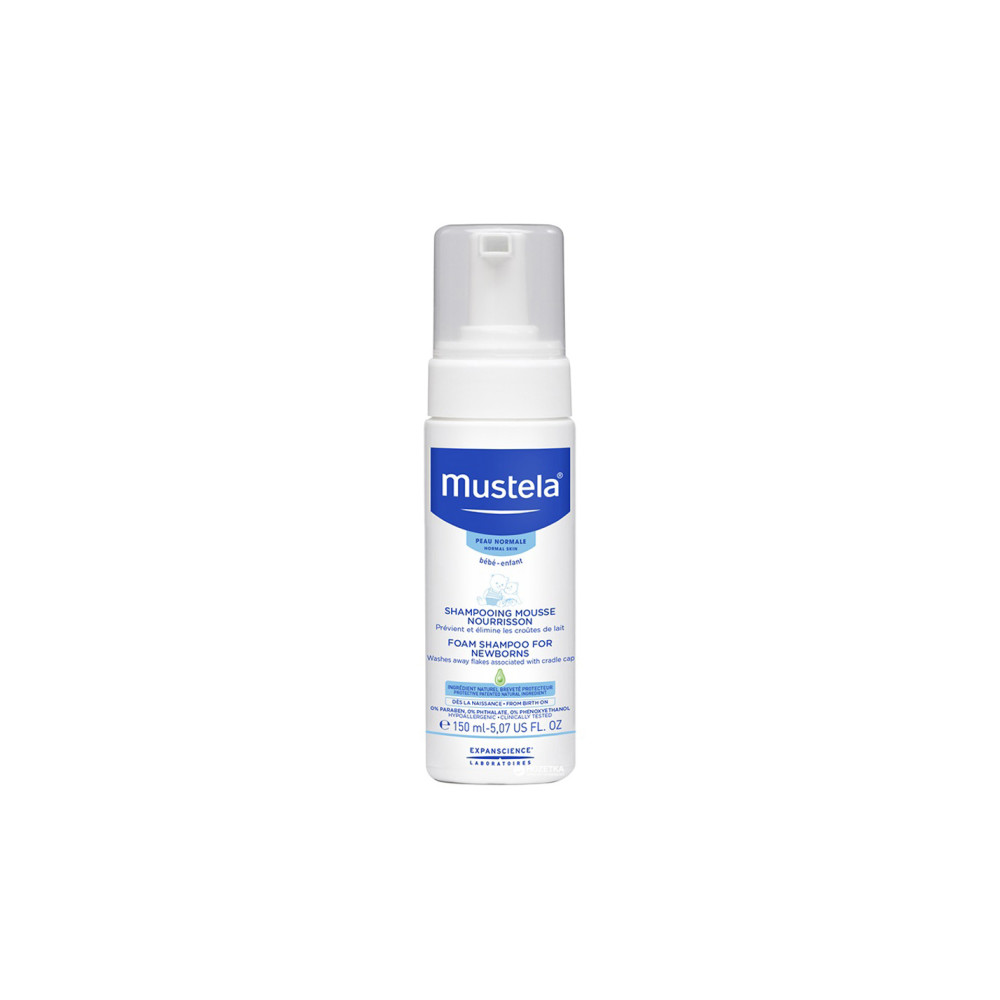 Ειδικά σχεδιασμένο για χρήση από την πρώτη κιόλας μέρα, το Shampooing mousse nourrisson για νεογνά της σειράς Mustela Bébé είναι ιδανικό για την θεραπεία και την πρόληψη της νινίδας των νεογνών: