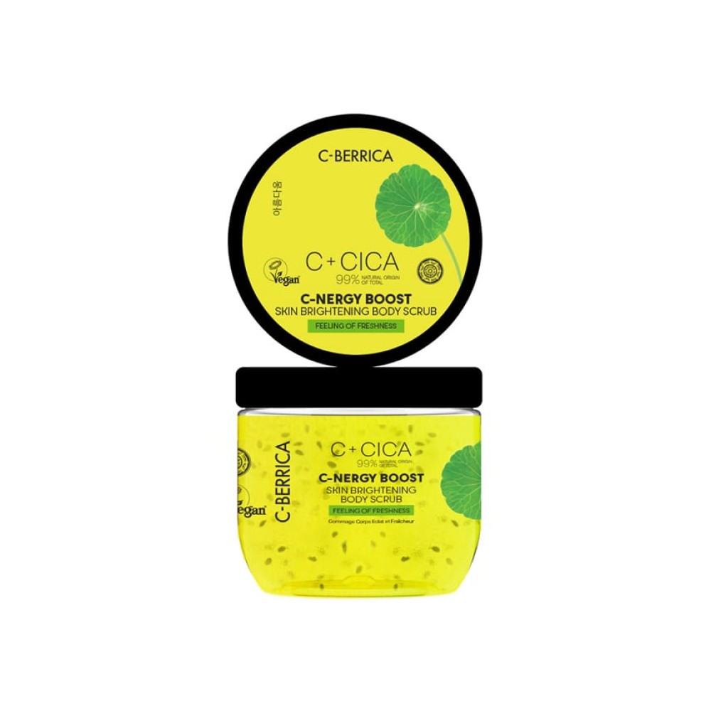 Απολέπισε απαλά και αναζωογόνησε την επιδερμίδα σου με το C+Cica C-Berrica Brightening Body Scrub C-Energy Boost Skin. Με CICA και Βιταμίνη C, απομακρύνει τα νεκρά κύτταρα, χαρίζει φωτεινότητα και βελτιώνει τον τόνο, αφήνοντας το δέρμα λείο, απαλό και λαμπερό.