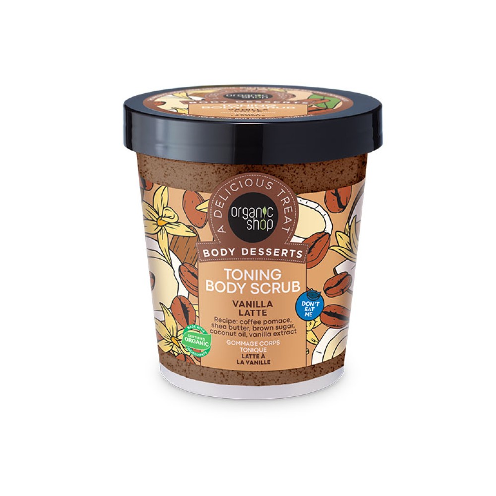 Συστατικά: Sucrose, Glycerin, Cetearyl Alcohol, Butyrospermum Parkii Butter, Coffea Arabica Seed Powder, Aqua, Vanilla Planifolia Fruit Extract*, Cocos Nucifera Oil*, Cocamidopropyl Betaine, Benzyl Alcohol, Dehydroacetic Acid, Parfum, Benzyl Benzoate, CI 77491, CI 77492, CI 77499.(*) – Ingredients From Organic Farming