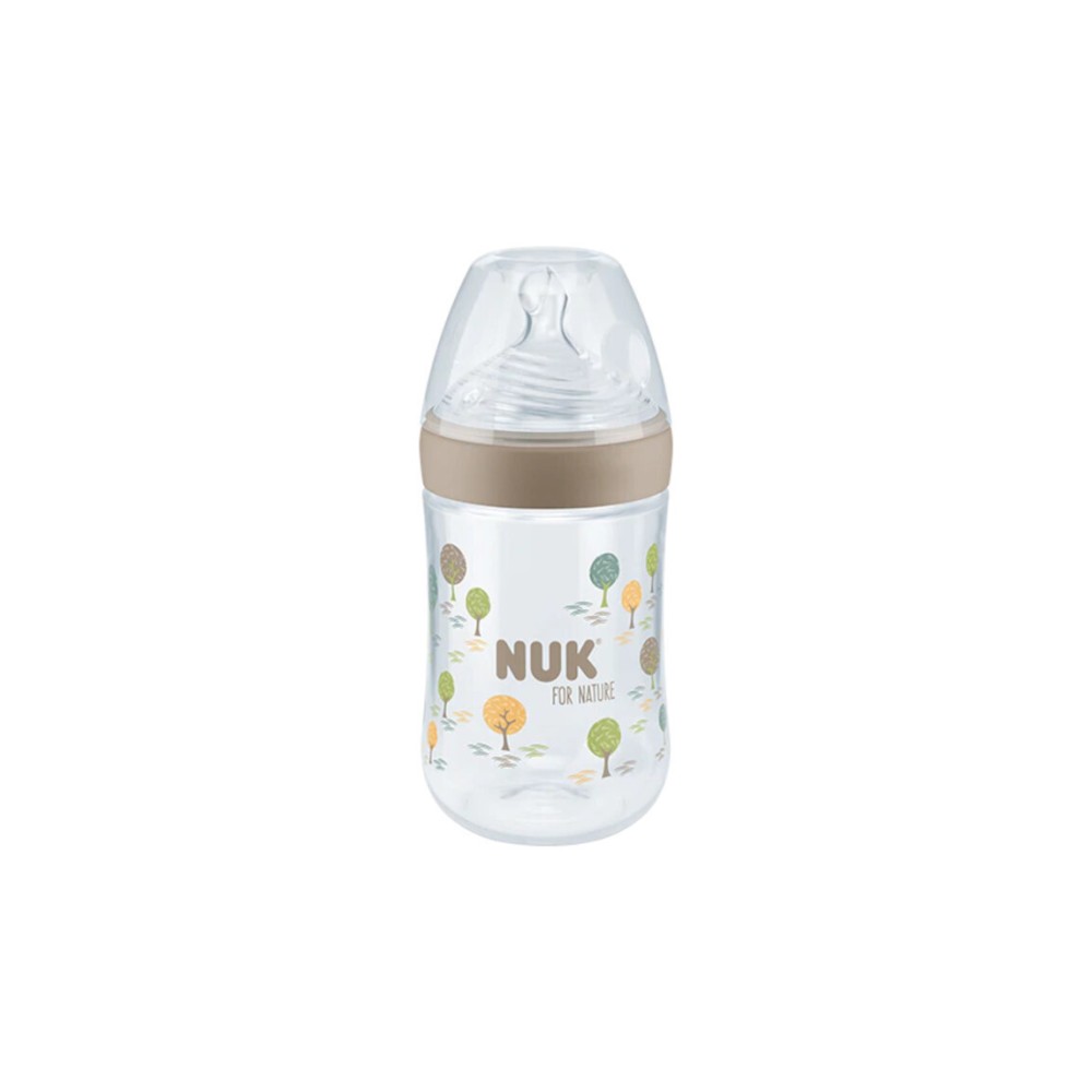 Nuk For Nature Μπιμπερό PP Με Δείκτη Ελέγχου Θερμοκρασίας & Θηλή Σιλικόνης Medium 6-18m Καφέ με δεντράκια 260ml