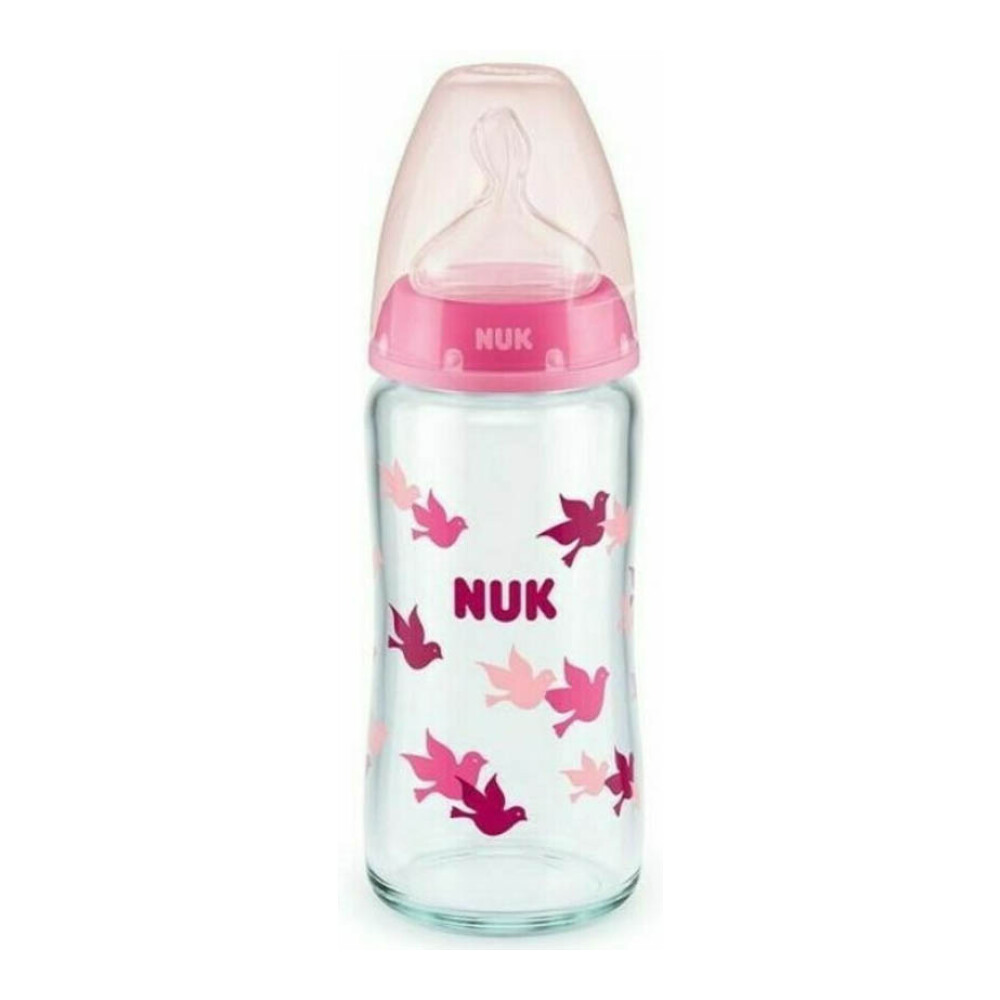 NUK First Choice+ Μπιμπερό Γυάλινο με Θηλή Σιλικόνης Ροζ 0-6m, 240ml (10.745.124)