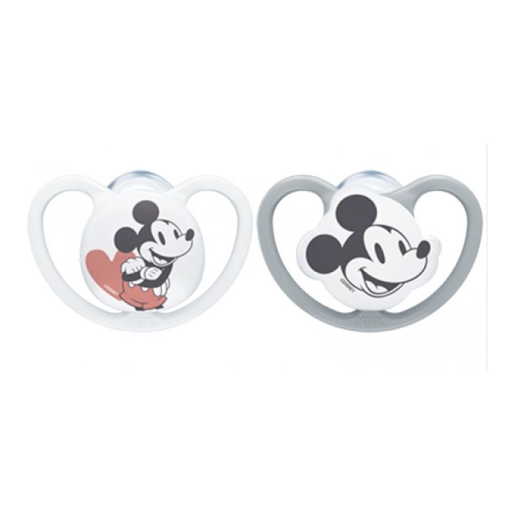 Nuk Space Disney Baby Mickey Mouse Πιπίλα Σιλικόνης Λευκή ή Γκρί 0-6m 1τμχ