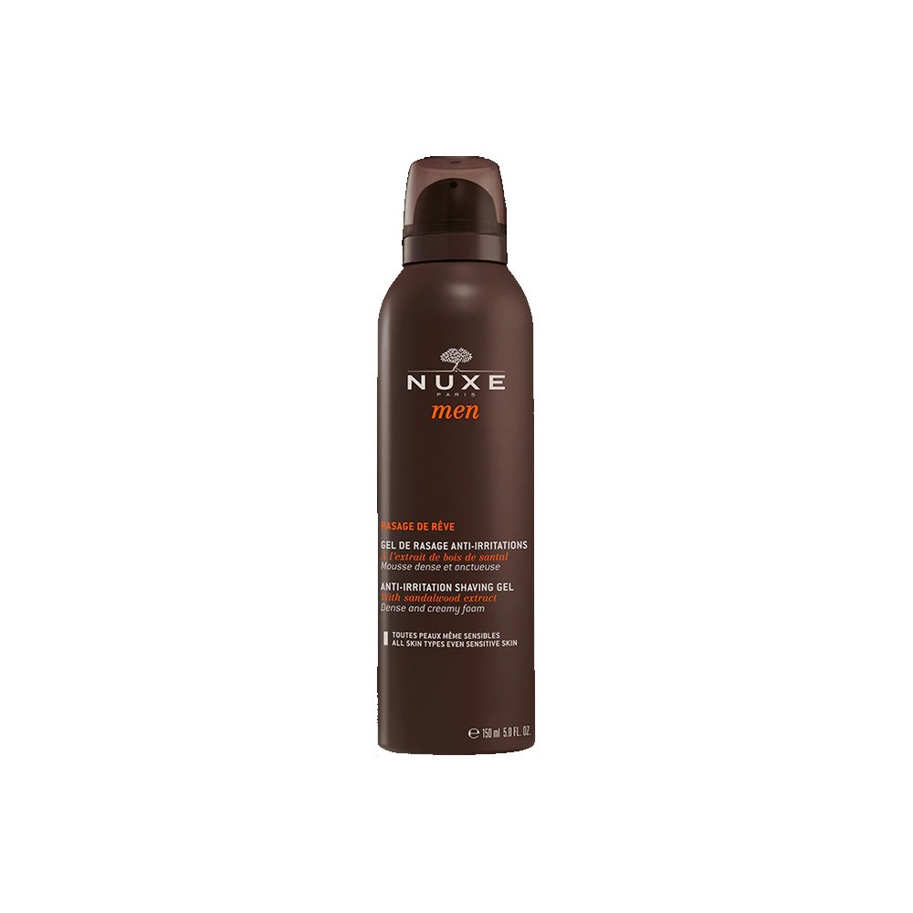 To ακαταμάχητο άρωμά της σειράς NUXE MEN, που συνδυάζει ξυλώδεις και πικάντικες νότες από φυσικά αιθέρια έλαια, σε ενα gel που μετατρέπεται σε πλούσιο κρεμώδη αφρό ξυρίσματος για εύκολο ξύρισμα ακριβείας, χωρίς ερεθισμούς.