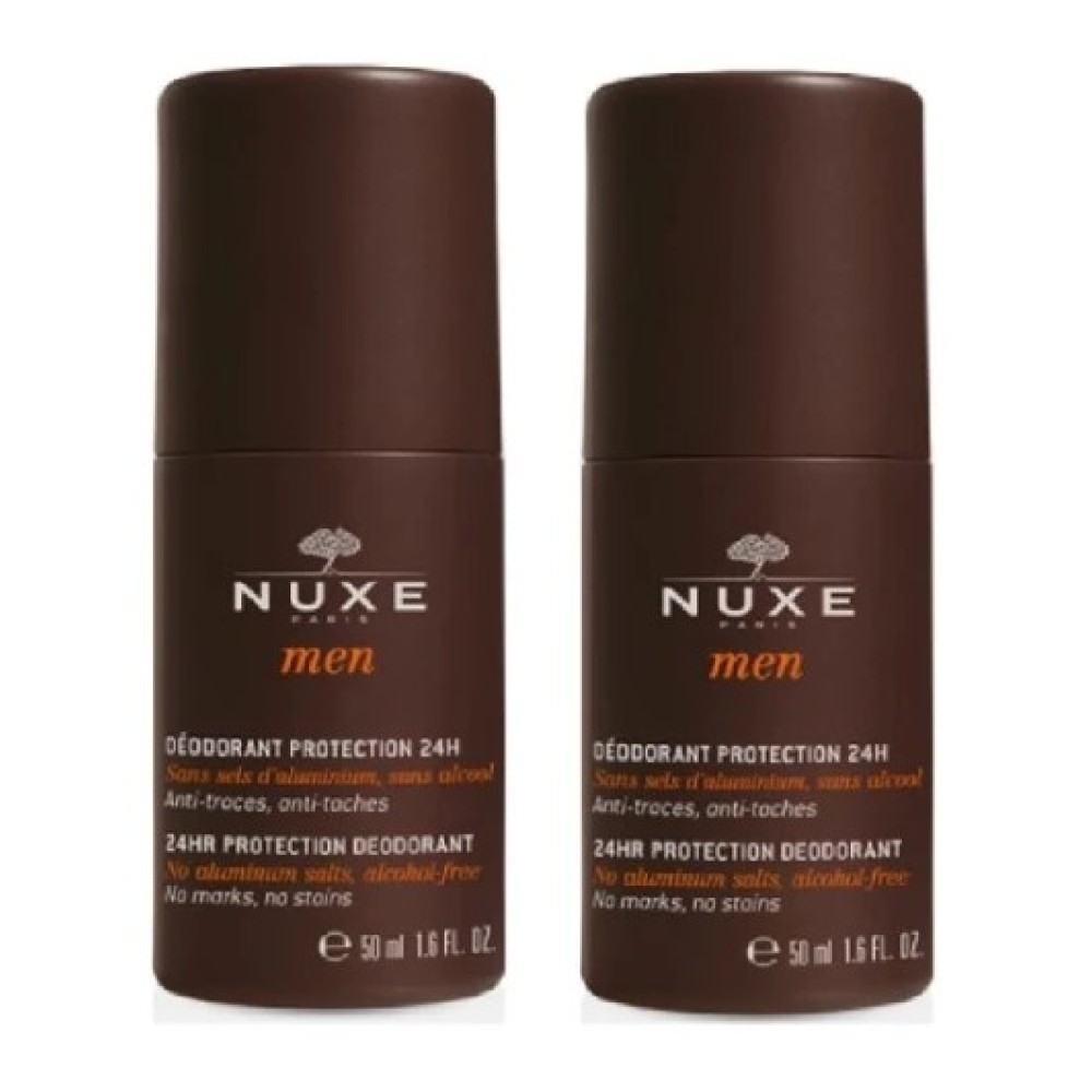 Το ακαταμάχητο άρωμά της σειράς Nuxe Men, που συνδυάζει ξυλώδεις και πικάντικες νότες από φυσικά αιθέρια έλαια, σε ενα αποσμητικό που προσφέρει 24ωρη προστασία. Περιέχει εκχύλισμα από φασκόμηλο που περιορίζει την υπερβολική εφίδρωση, παράγωγο από έλαιο καρύδας που αιχμαλωτίζει και εξουδετερώνει τις οσμές, πούδρα πυριτίας φυσικής προέλευσης που απορροφά την υγρασία και φύλλα baobab για ενίσχυση του επιδερμικού φραγμού.
