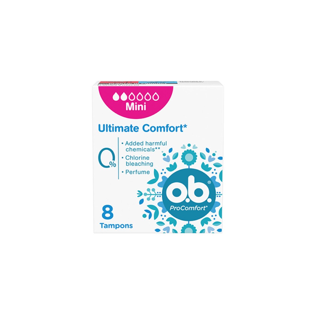 Τα o.b.® PROCOMFORT™ διαθέτουν το μοναδικό κάλυμμα SILKTOUCH™ για εύκολη εφαρμογή και αφαίρεση, ενώ παρέχουν αξιόπιστη προστασία χάρη στην επαναστατική τεχνολογία DynamicFit™ με τρισδιάστατη δομή, που εξασφαλίζει άριστη προσαρμογή στο σχήμα του σώματος και συμβάλλει στην αποτελεσματική κατανομή του υγρού στο εσωτερικό του ταμπόν μέσα από τα αλληλοσυνδεόμενα αυλάκια. Είναι επίσης πολύ μικρά, με λεπτή σχεδίαση και ειδικά διαμορφωμένη άκρη, παρέχοντας την πιο εύκολη εφαρμογή ανάμεσα στη σειρά o.b.®.  Αυτό τα καθιστά πολύ άνετα και εύκολα στη χρήση από την πρώτη φορά που θα τα χρησιμοποιήσετε. Τα o.b.®PROCOMFORT™ Mini είναι ιδανικά για κοπέλες που χρησιμοποιούν για πρώτη φορά ταμπόν και ημέρες με μικρή έως μέτρια ροή.