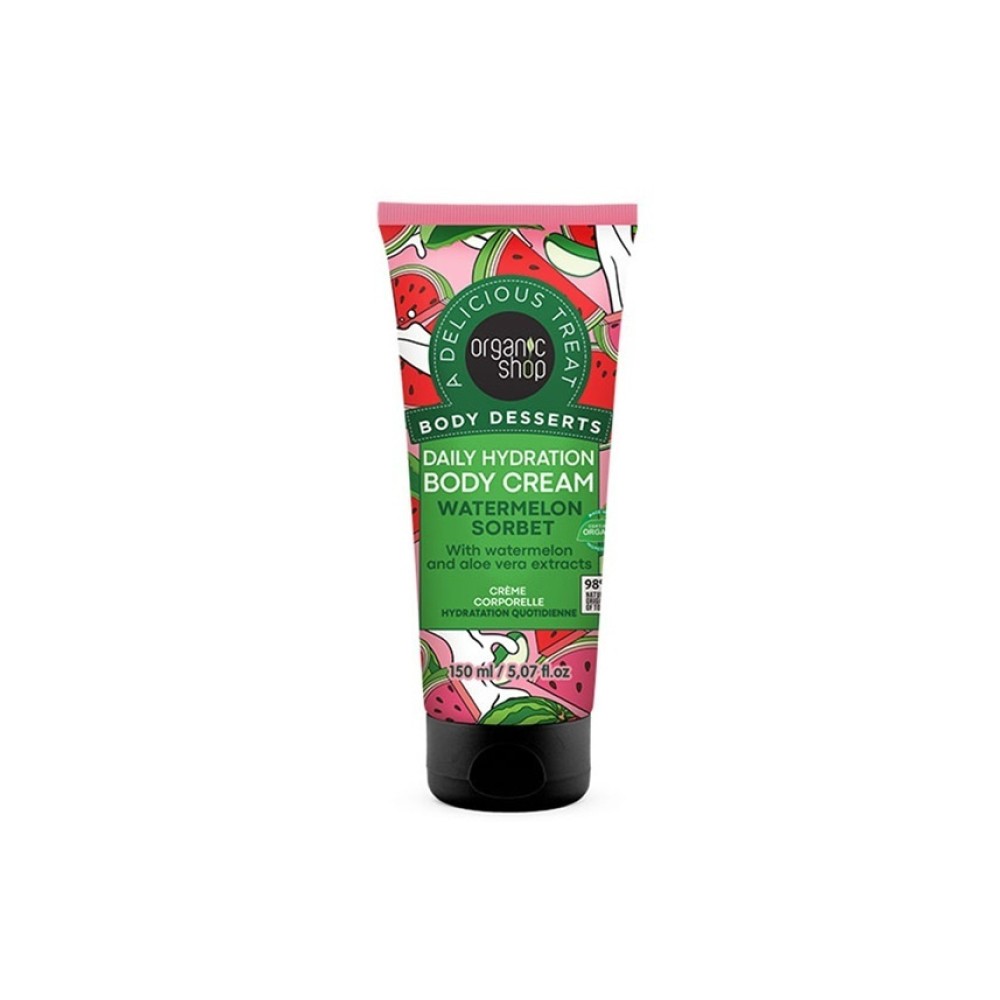 Αναζωογονήστε τις αισθήσεις σας με το απόλυτα καλοκαιρινό άρωμα του νέου Body Dessert cream WATERMELON SORBEΤ! Εμπλουτισμένη με εκχύλισμα καρπουζιού & αλόης βέρα, αποτελεί την ιδανική λύση τώρα το καλοκαίρι, καθώς προσφέρει βαθιά θρέψη & αναζωογόνηση στην επιδερμίδα σας, αφήνοντάς την απαλή και λεία. Ζήστε μια έκρηξη φρουτώδους φρεσκάδας με κάθε εφαρμογή και αφεθείτε στην απόλυτη ενυδάτωση.