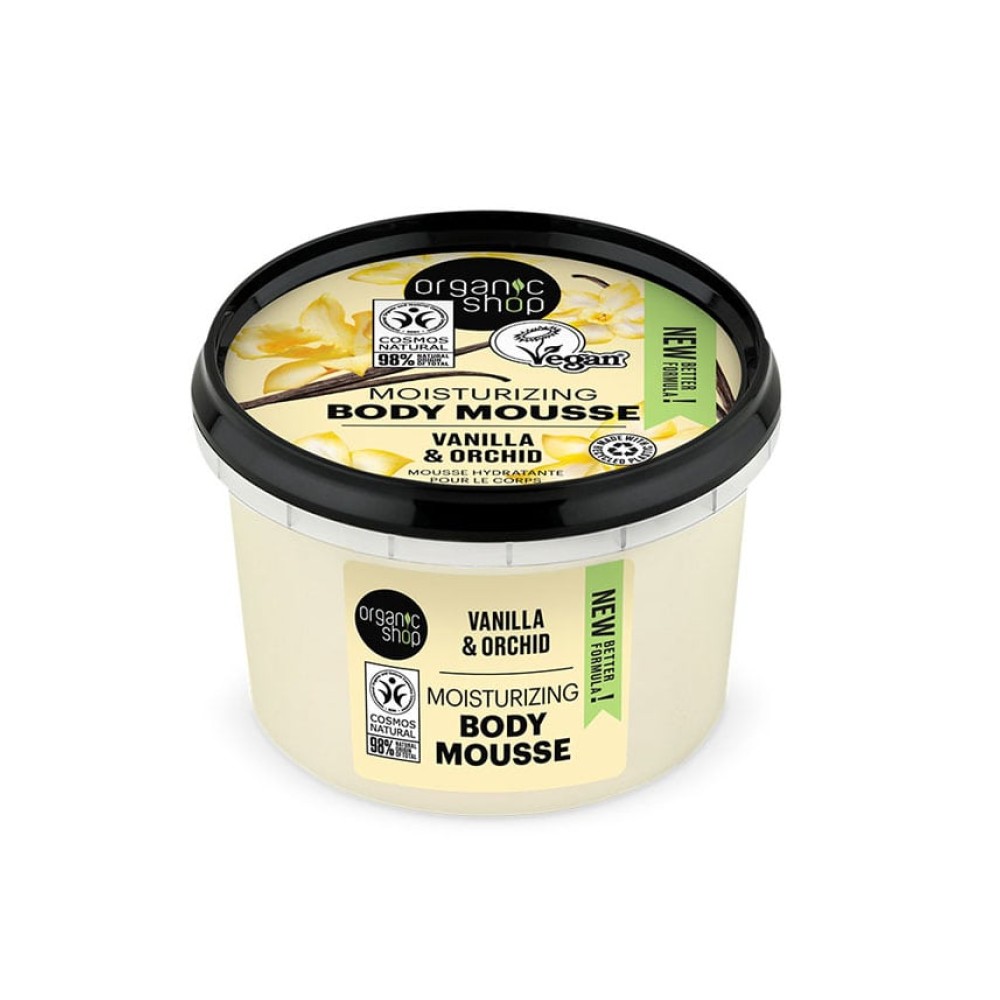 Περιποιηθείτε τον εαυτό σας με τη λαχταριστή μους σώματος από βιολογικό εκχύλισμα βανίλιας και εκχύλισμα ορχιδέας.