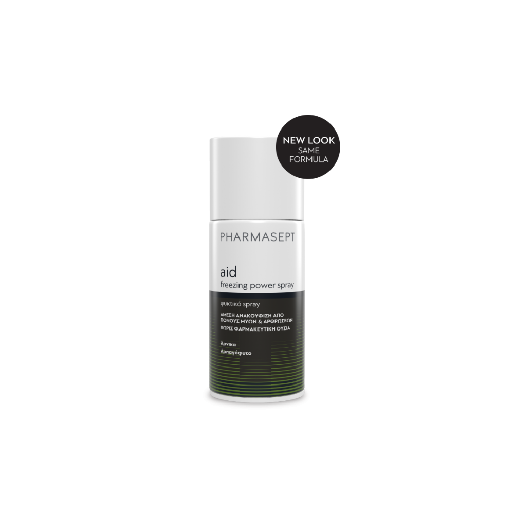 Ψυκτικό spray με εκχυλίσματα βοτάνων, για άμεση ανακούφιση από πόνους μυών και αρθρώσεων, με τη δύναμη του πάγου. Δεν περιέχει καμία φαρμακευτική ουσία.