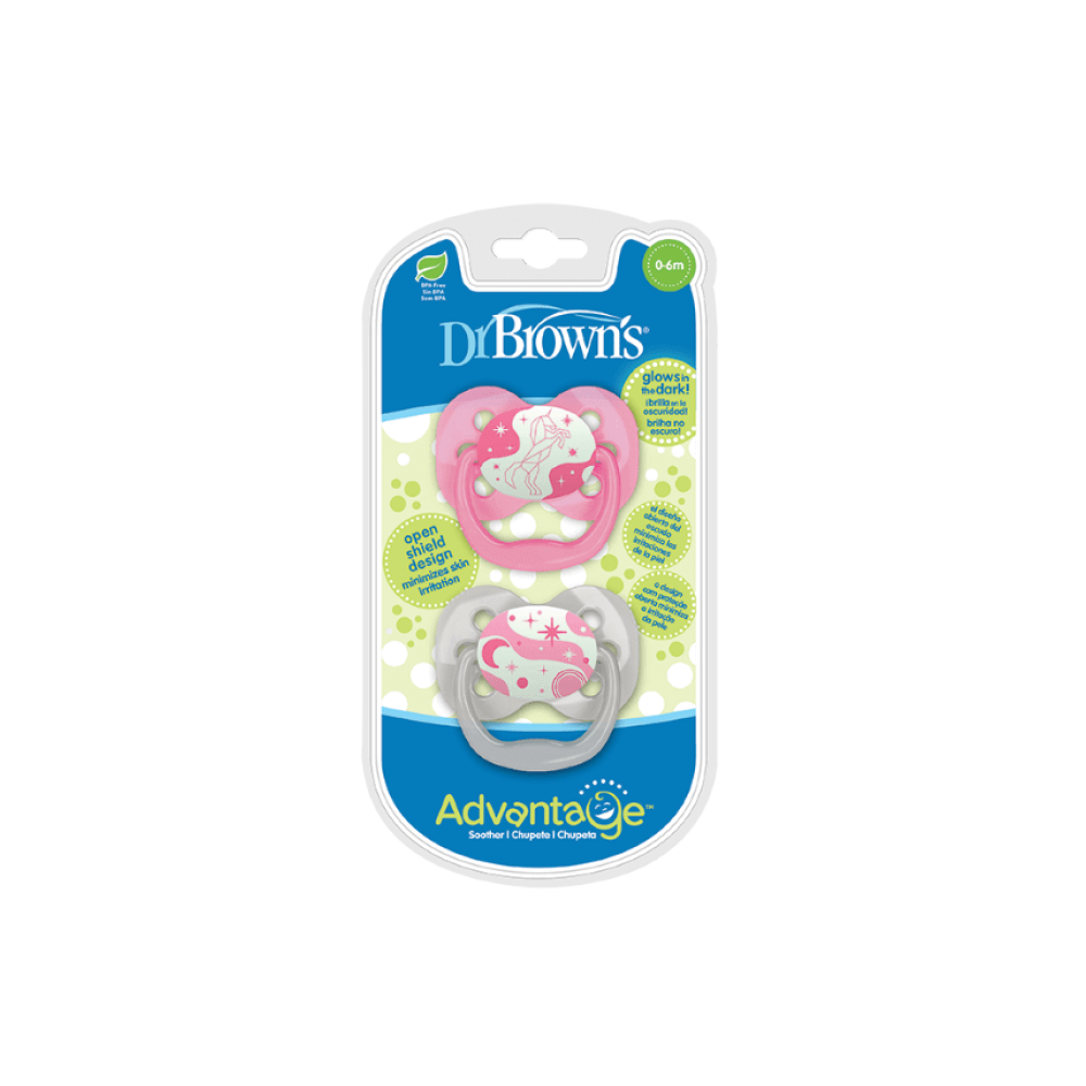 Οι πιπίλες σιλικόνης Dr. Brown’s Advantage Νυκτός με τον νέο εργονομικό σχεδιασμό, προσαρμόζονται στην στοματική κοιλότητα του μωρού ενώ οι αεραγωγοί επιτρέπουν στον αέρα να περνάει ώστε να μην ερεθίζεται η επιδερμίδα του μωρού σας. Σχεδιασμένες για να τις βλέπετε ευκολότερα στο σκοτάδι.