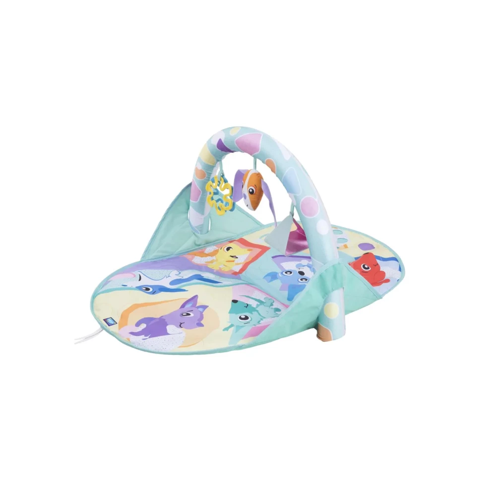 Το υπέροχα εικονογραφημένο χαλάκι παιχνιδιού είναι γεμάτο από φωτεινά χρώματα, ενέργεια και χαρά. Προστατεύει το βρέφος από το πάτωμα, ενώ αυτό εξασκεί την αδρή του κινητικότητα. Ο πρακτικός, πτυσσόμενος σχεδιασμός, η χειρολαβή και τα τοποθετημένα με ασφάλεια στοιχεία κάνουν τη μεταφορά του τόσο εύκολη που απλώς το παίρνετε και φεύγετε!